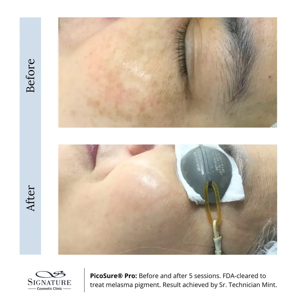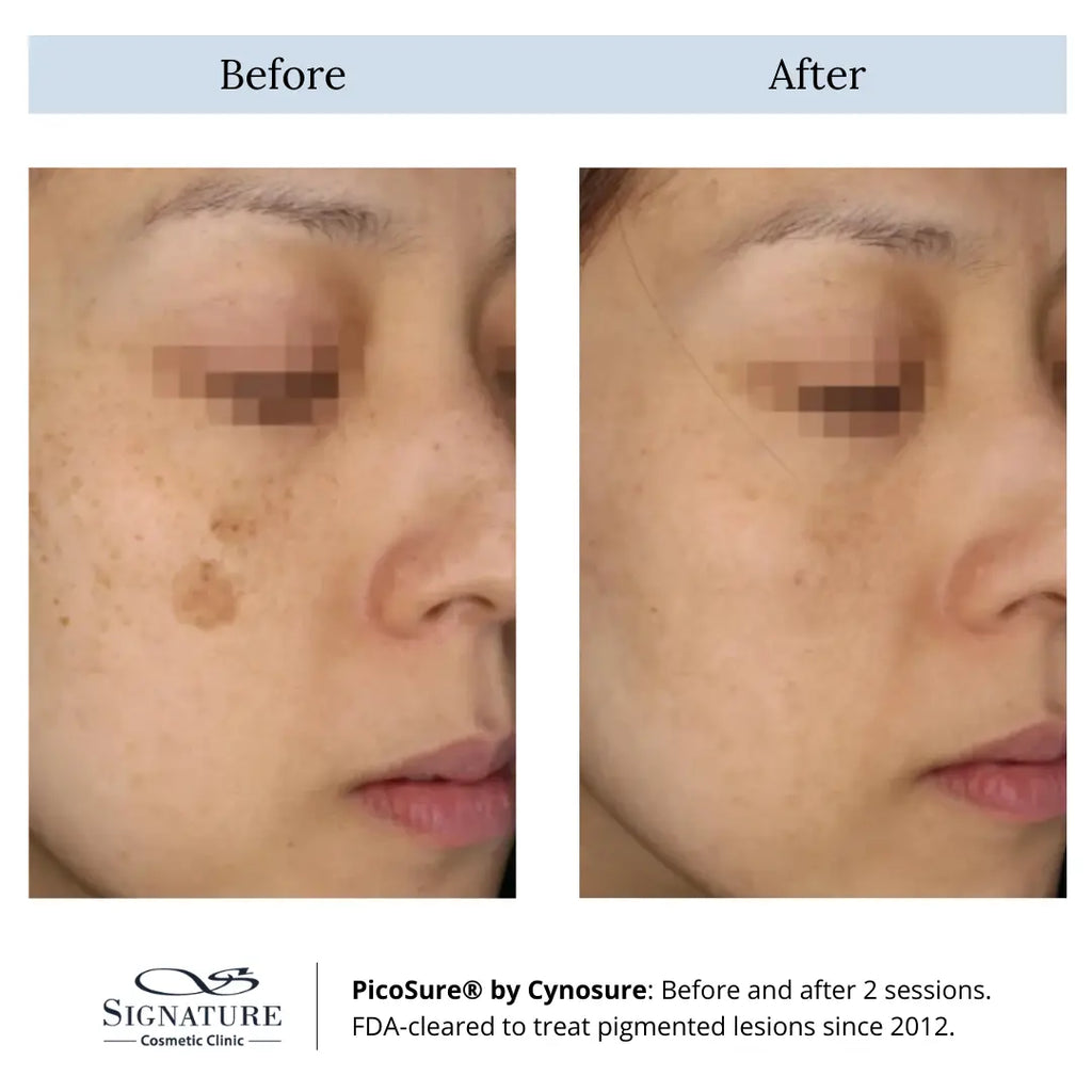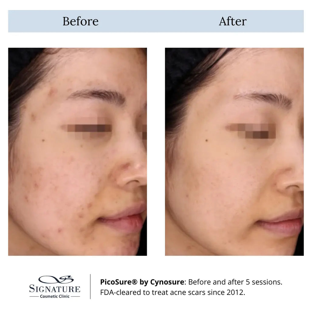 Picosure is the first picosecond laser technology for the removal of pigmented lesions, such as acne scars, wrinkles, sunspots and while rejuvenating the skin. Using picosecond mechanism of the technology, the laser is able to deliver energy to breakdown the melanin (causes of pigments) without damaging the skin. The rapid pulse energy also stimulates the skin’s natural healing process, encouraging collagen and elastin production.