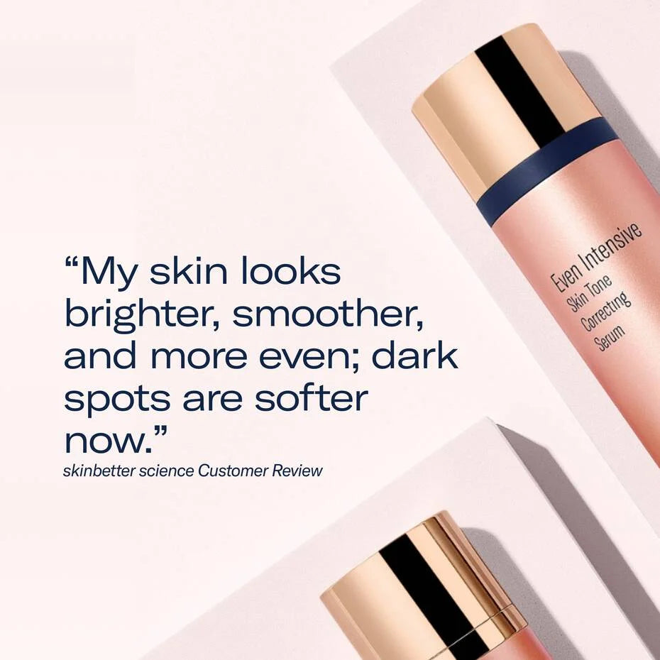 Even Intensive Skin Tone Correcting Serum is a multi-action, pigment-correcting serum designed to brighten the skin and reduce visible discoloration , including brown patches, sun damage, and uneven skin tone.