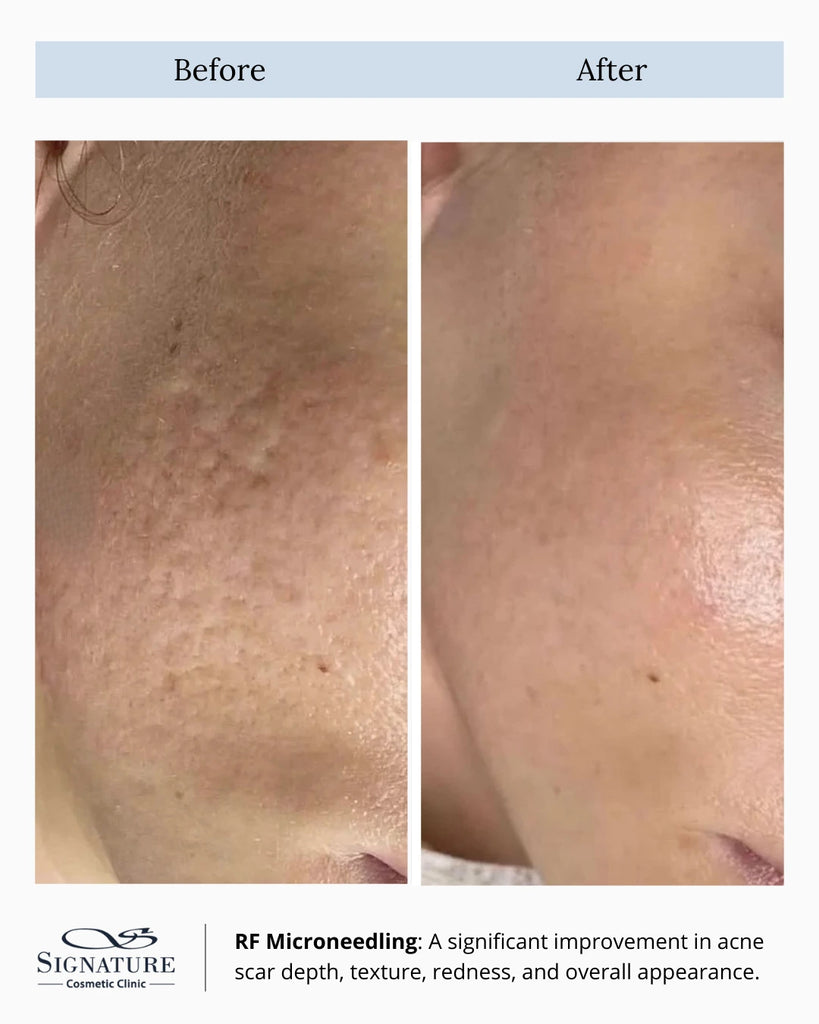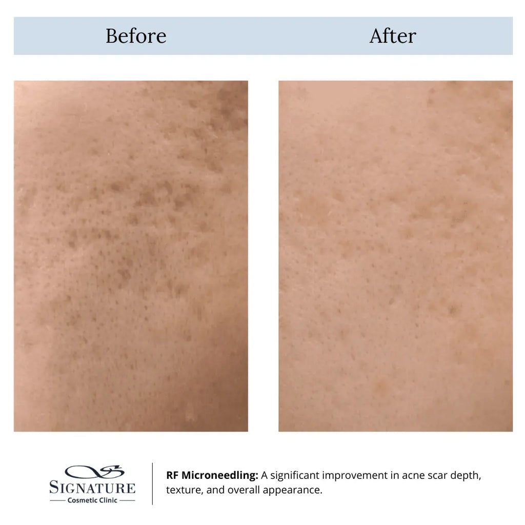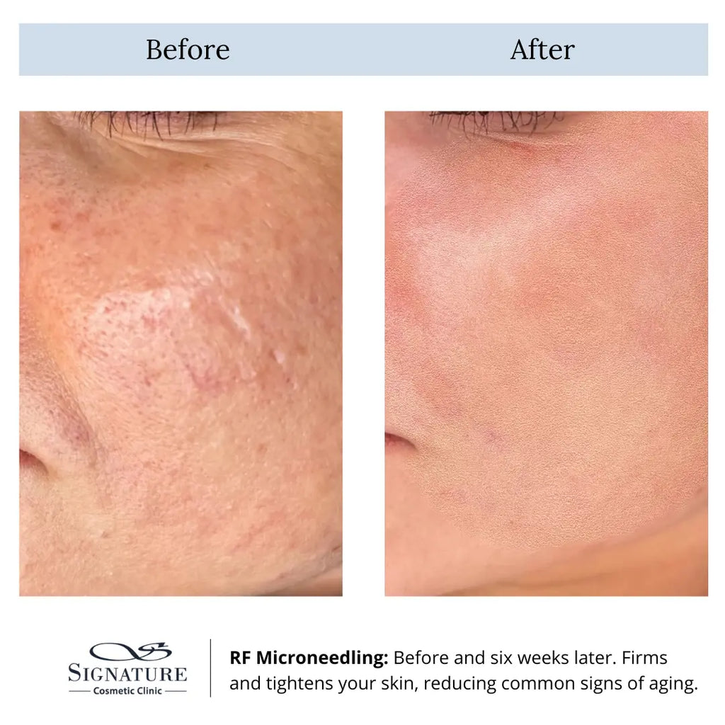 One of the most highly effective uses of Potenza RF microneedling is in the reduction of acne scars and other types of scarring. By breaking down old collagen and stimulating the production of new, healthy tissue, RF microneedling smooths and refines the skin’s texture from within. It also: