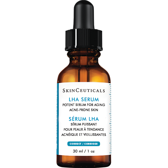 SkinCeuticals LHA Serum is a targeted resurfacing and clarifying serum formulated for adult acne and visible skin aging. With a powerful blend of Lipo-Hydroxy Acid (LHA), glycolic acid, and salicylic acid, this daily-use serum gently exfoliates dead skin cells, decongests pores, and helps reduce blemishes and rough texture—without over-drying the skin.